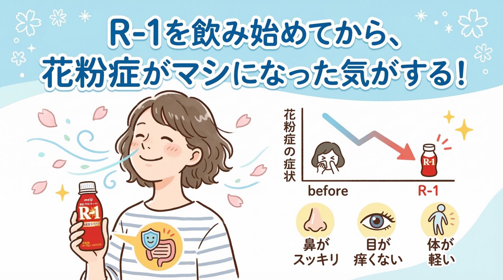 R-1を飲みだしてから花粉症がましになった気がする!?