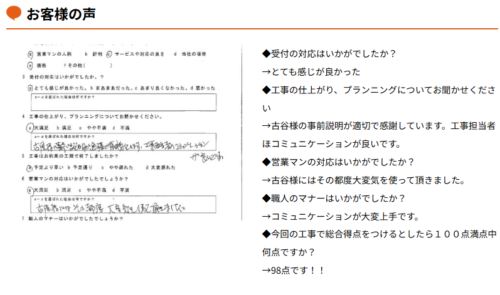 プロタイムズ松原店(丹下工業)では、お客様とのコミュニケーションを大切にし、施工中も常に進捗をお伝えしています。