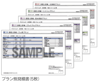 また、診断結果に基づいて複数の塗装プランから最適なものを選べるよう5種類の見積もり提案を行うなど、費用の比較・検討がしやすい工夫もしています